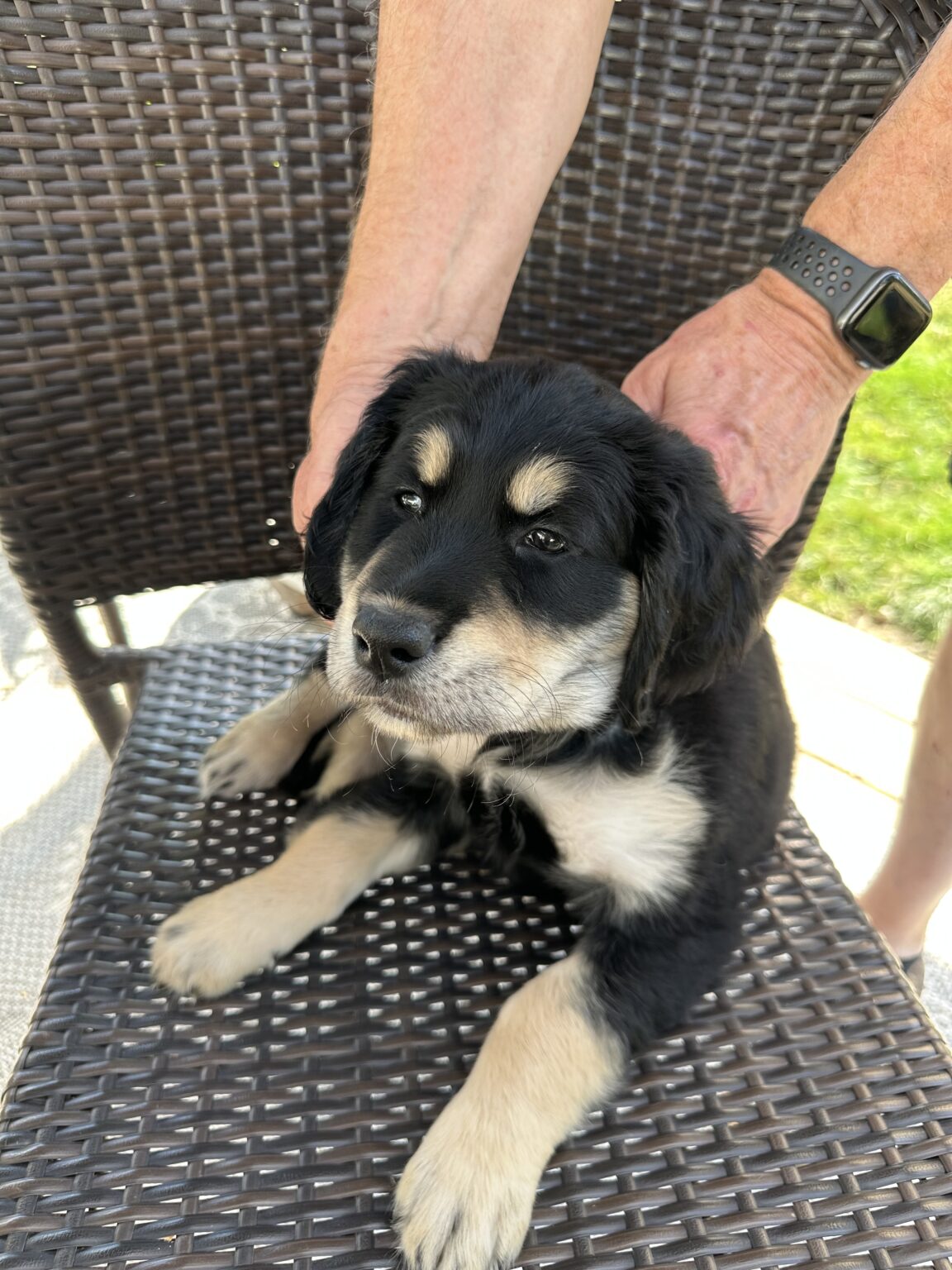 Ginger’s sire is Rush, a tri-colored Coltriever who’s mellow personality will add to the calm nature of these puppies. We have a variety of colors in this litter – black and white – golden – and tri-color. We can see they will all have longer hair – no smooth coats in this litter.